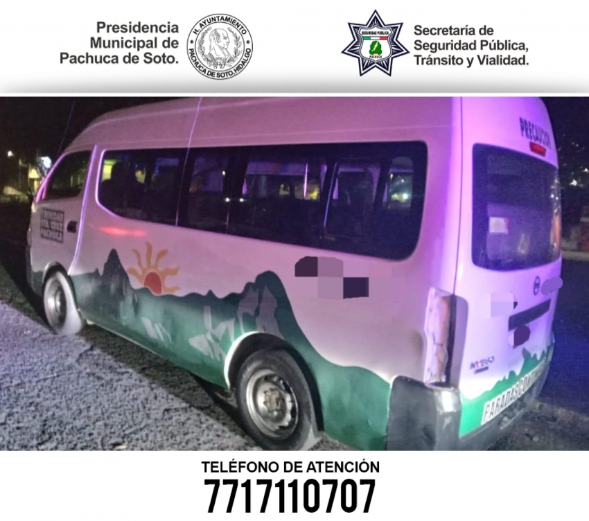 Por medio de llamada al número de emergencias 9-1-1, un usuario reportó que le robaron un vehículo Nissan Urvan color blanco con verde, con rótulo de transporte público de la ruta Trinidad Santa Cruz-Pachuca