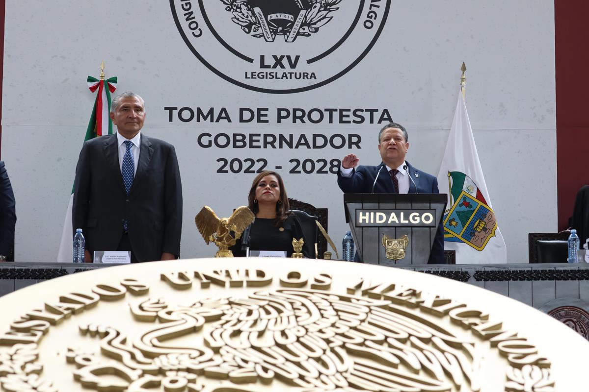 Menchaca Salazar rindió protesta como Gobernador Constitucional de Hidalgo, durante un acto público en plaza Juárez de Pachuca
